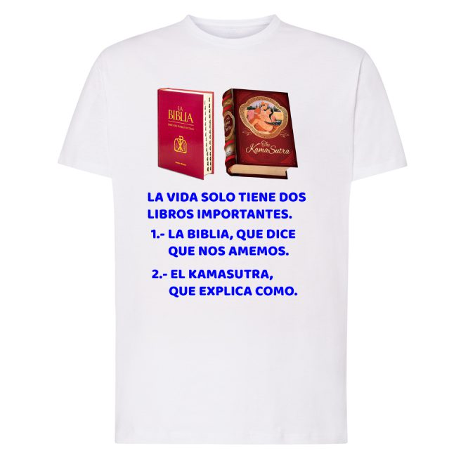 Camiseta con diseño LOS DOS LIBROS IMPORTANTES DE LA VIDA. Tejido 100% algodón