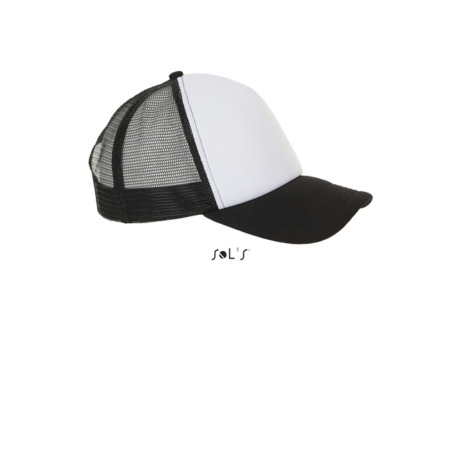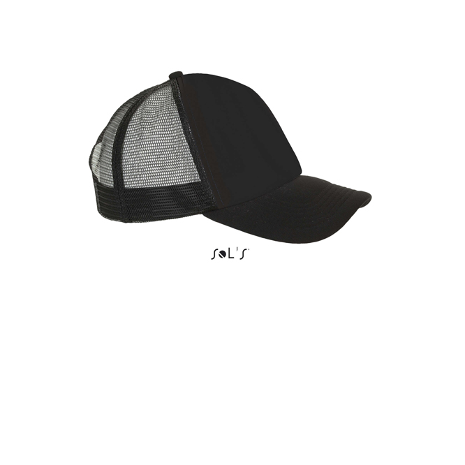 GORRA DE MALLA DE 5 PANELES. 100% poliéster malla. 100% poliéster en el panel central (5mm foam) y visera (3mm foam). 5 paneles. Cierre ajustable de plástico.