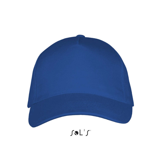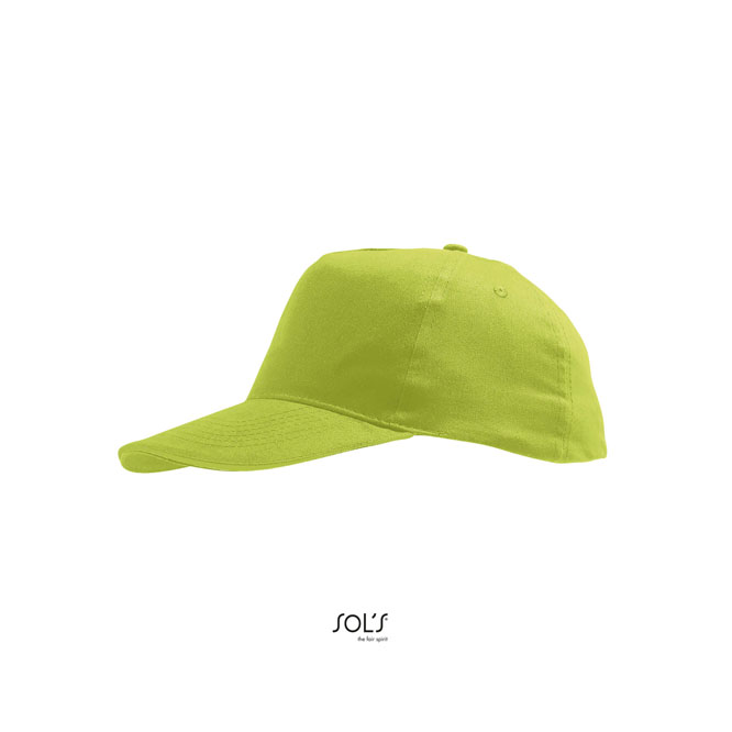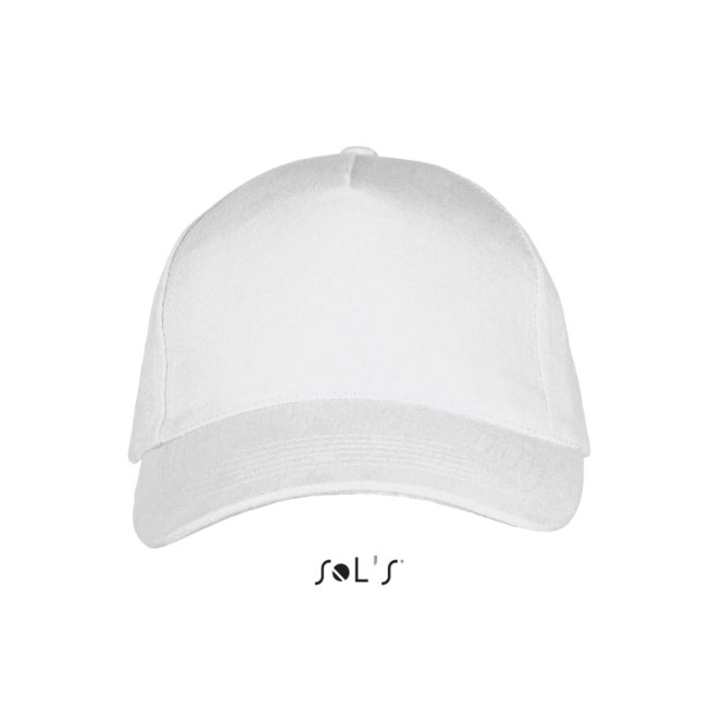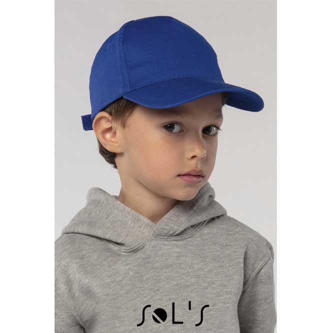 Gorra Juvenil 5 paneles 180 gr/m2. 100% algodón perchado ligero. 5 paneles. Visera preformada. 4 agujeros de ventilación bordados. Cierre atrás regulable con tira auto-agarrante.
